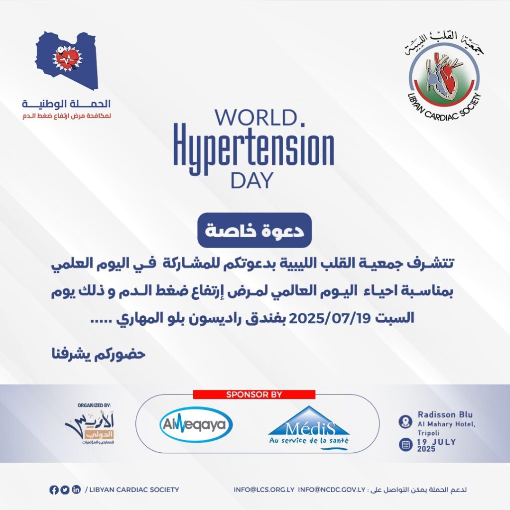 Tripoli, Libya – Calling all dedicated doctors and healthcare professionals to Join us for a LCS-World Hypertension Day